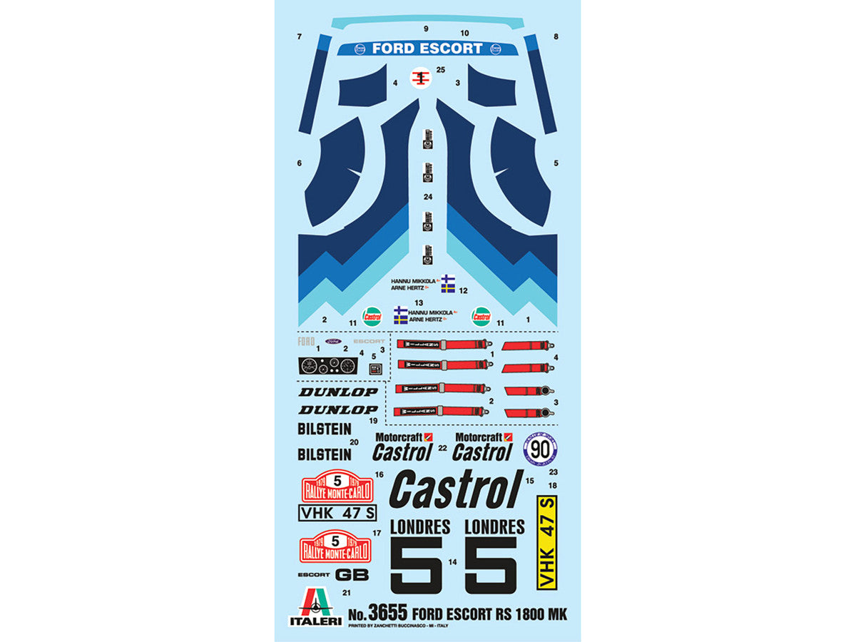 Brand new 1/24 scale plastic model kit of Ford Escort RS 1800 Mk.II #5 Rallye Monte Carlo (1979) (Skill 2) 1/24 plastic model kit by Italeri.