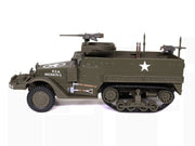The M3 Half-Track with M2HB Machine Gun was a key vehicle used by the U.S. Army during World War II, known for its versatility and effectiveness in both combat and support roles. Designed to combine the mobility of a wheeled vehicle with the rugged durability of tracked tracks, the M3 Half-Track was equipped with an M2HB .50 caliber heavy machine gun, providing vital fire support to infantry units. The vehicle was built on the chassis of the M2 half-track, and its fully armored body protected the crew and soldiers inside while offering the necessary stability to support the powerful machine gun mounted atop. Its design enabled it to traverse difficult terrains, including mud, snow, and sand, making it indispensable in varied battlefield environments.