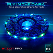 360° Sensor Scoot Drone: Scoot Pro hand drone for kids and adults is a premium addition to the Scoot Drone product line with advanced, industry leading technology. This hand operated drone features patented 360° motion sensors to detect objects for ultimate flight control and obstacle avoidance!