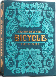 Make a splash at your next card game with Bicycle® Sea King! Deal a hand with friends and experience the richly detailed blues and teals of the card back and faces that are combined with a foiled and embossed tuck to make a deck that is truly fit for a king! Premium Foil Packaging Printed on Traditional Bicycle Card Stock.
