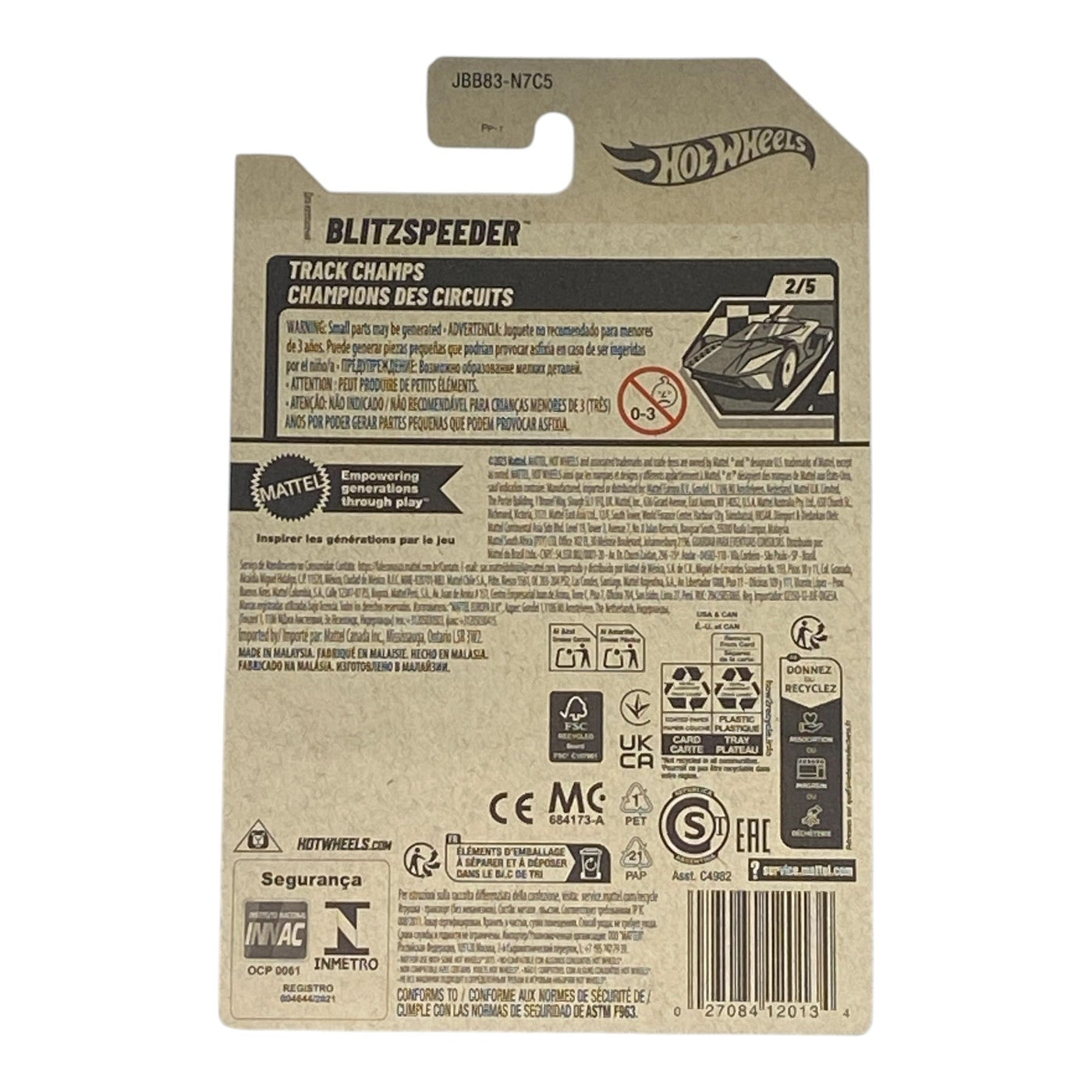 Ignite high-speed thrills with the Hot Wheels Blitzspeeder from the exhilarating Track Champs Series 2/5! This 1:64 scale die-cast powerhouse, a 2025 mainline release (#215/250), boasts a sleek futuristic design with a vibrant green body, striking purple accents, and an oversized rear wing for ultimate track domination. Born from Hot Wheels' innovative legacy and designed for razor-sharp turns and blistering loops, the Blitzspeeder channels 700 HP V8 fury in a compact form, complete with detailed tampo graphics, smoke-tinted windows, and premium J5 wheels. Perfect for kids aged 3+ and die-cast collectors, it fuels epic races on custom tracks or stands out in any garage display. As part of the HW Track Champs lineup, this green speed demon delivers non-stop action and value, ideal for searches like "Hot Wheels Blitzspeeder 2025 toy" or "Track Champs die-cast cars green." Rev up your collection with this must-have mini that turns every straightaway into a championship victory!