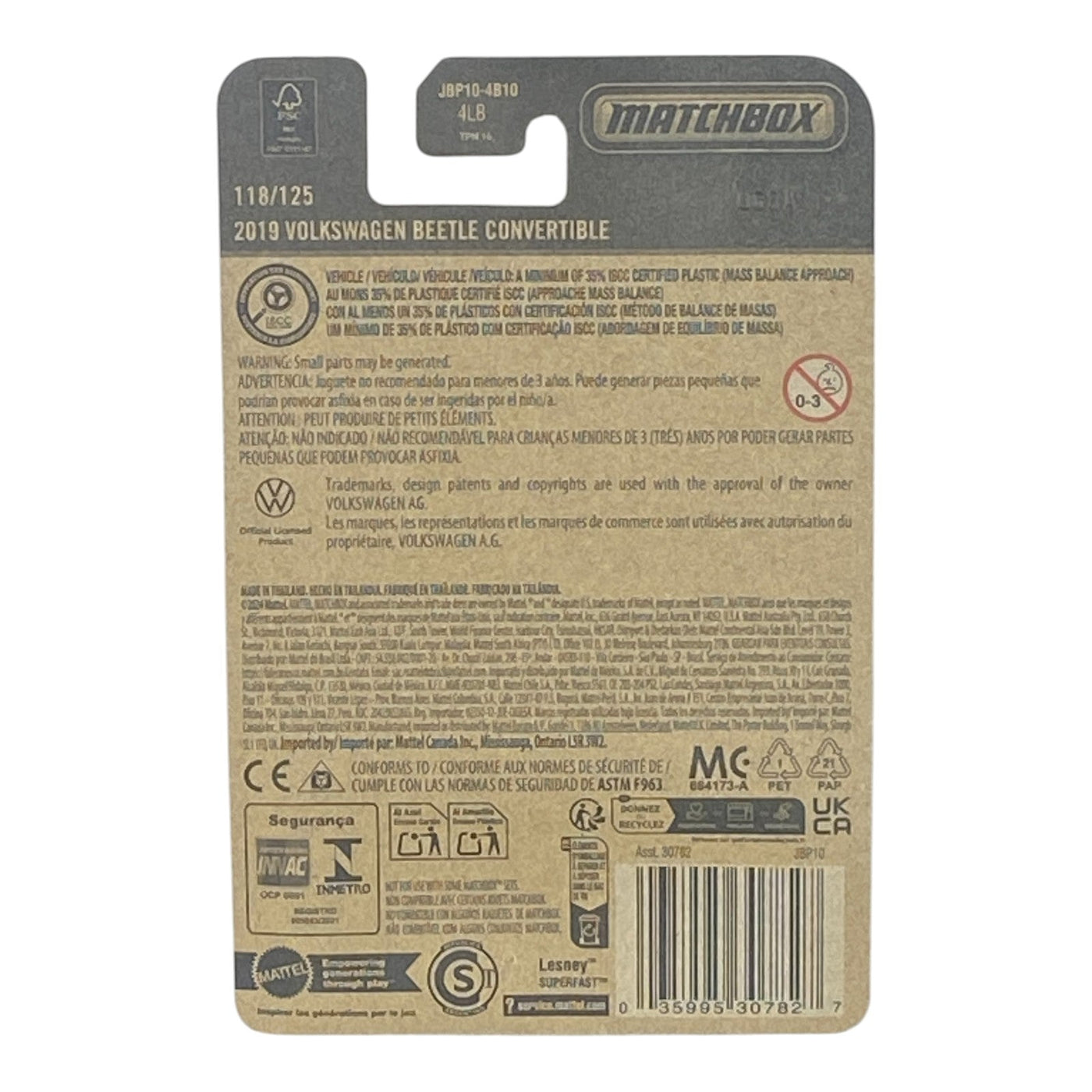 In conclusion, the Matchbox 2019 Volkswagen Beetle Convertible is more than just a toy. It embodies the spirit of fun and adventure that comes with driving a convertible, and it's a must-have for any car enthusiast's collection.