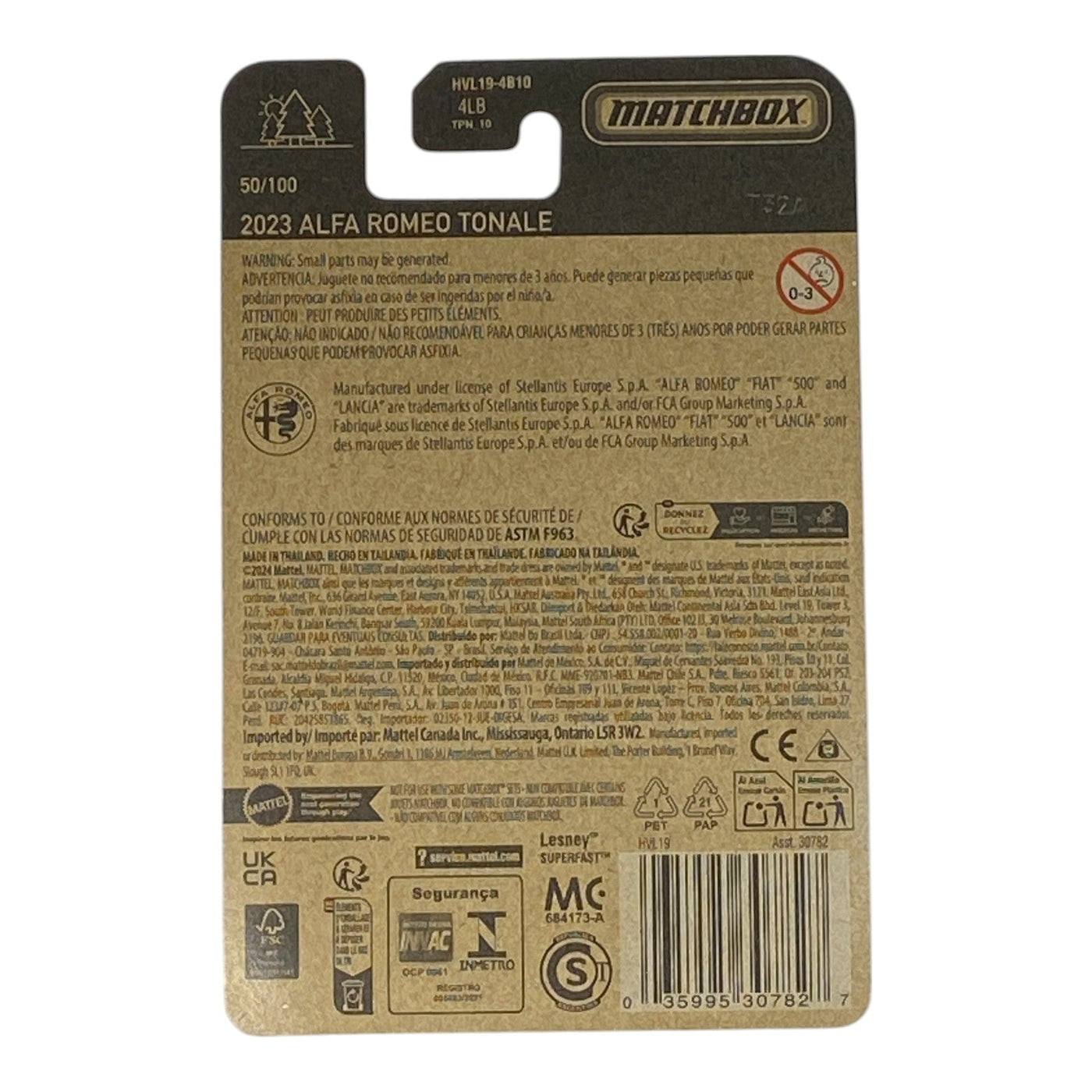 The Alfa Romeo Tonale is a stunning representation of contemporary automotive design and innovation that now fits perfectly within the Matchbox Series. This Matchbox 2023 Alfa Romeo Tonale - Matchbox Series 50/100 model captures the essence of the real-life vehicle while offering an exhilarating experience for collectors and car enthusiasts alike. Made with attention to detail and quality, this die-cast model is a must-have for your collection.