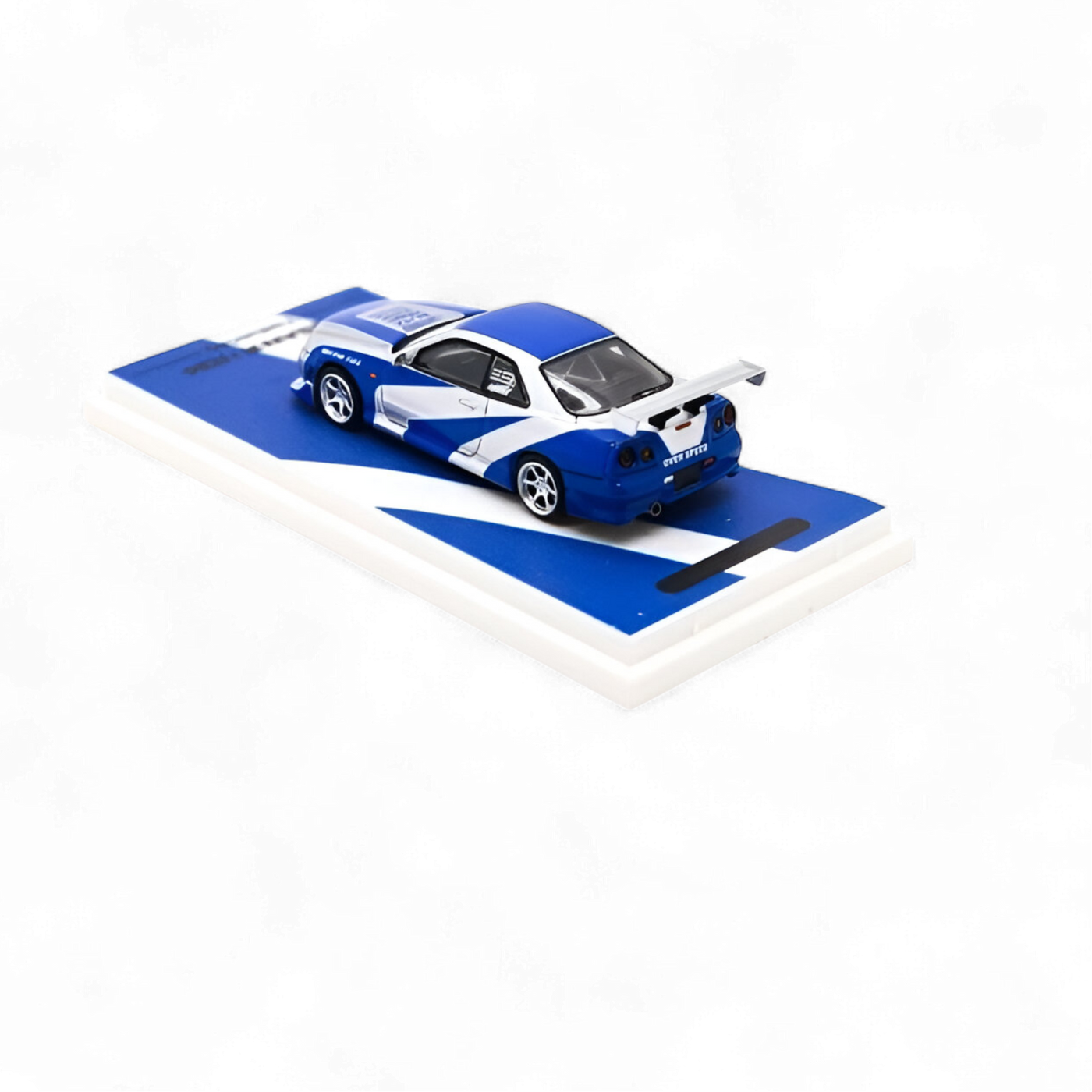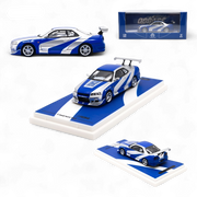 This TimeMicro 1:64 scale model features the iconic Nissan Skyline GT-R R34 in a Blue Silver colorway.
