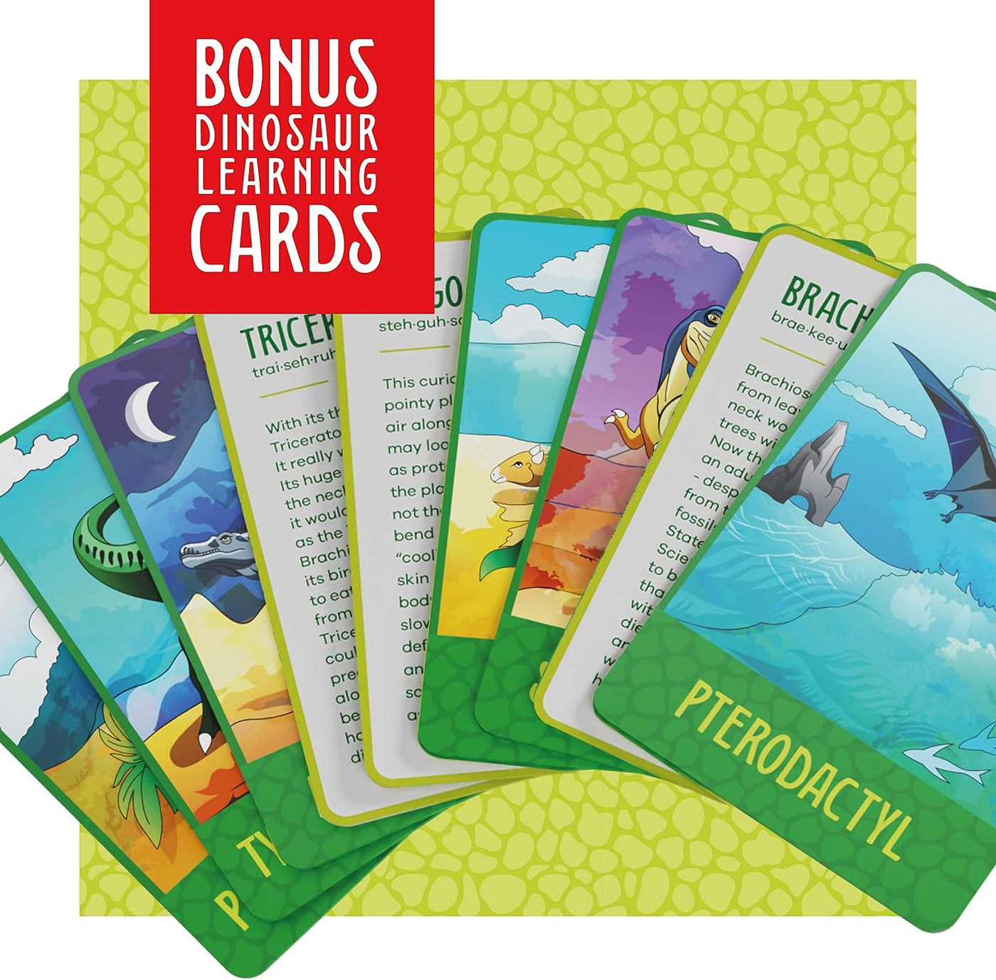 Glow-in-the-dark Magic: Dive into a dazzling dino landscape by day, and watch it transform into a radiant prehistoric scene by night. Discover hidden secrets and dinosaur names as they magically appear in the dark!