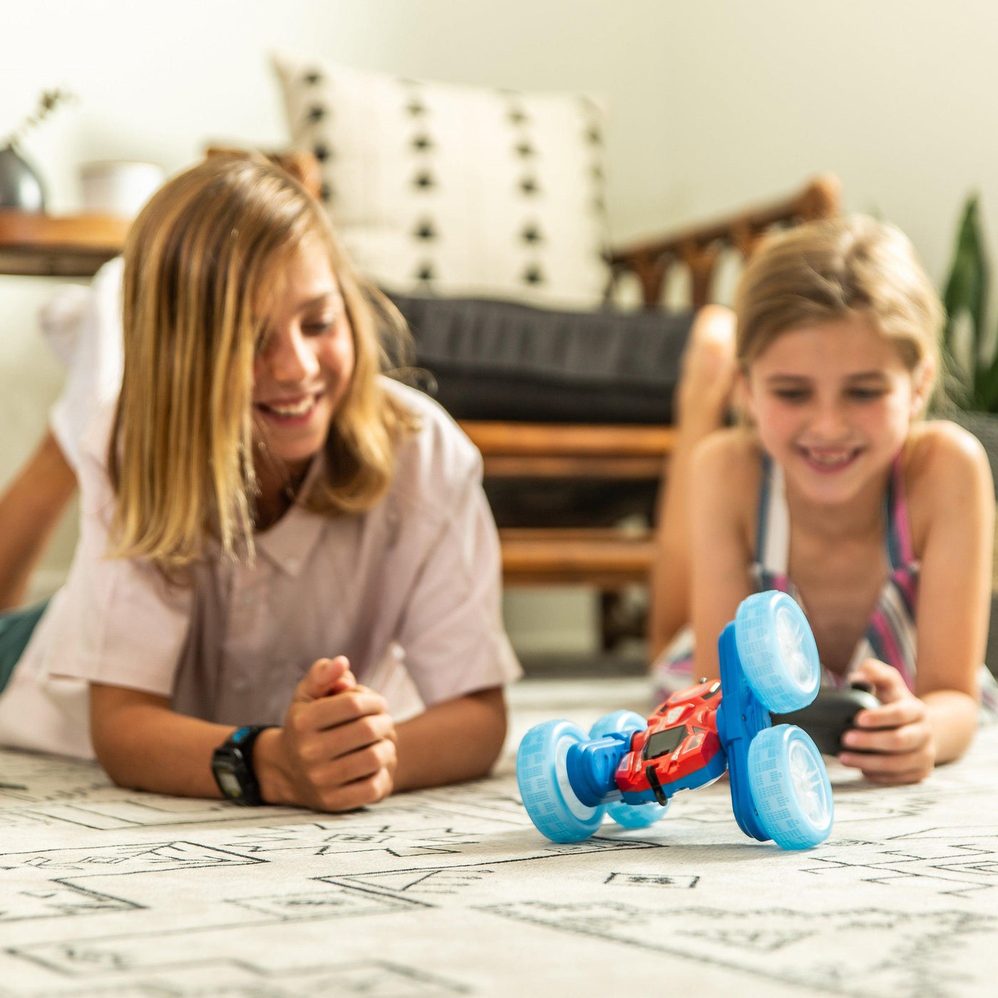 Enhance kids’ concentration as they drive this super fun remote control car upside down or downside up! This RC rock crawler rolls on oversized rubber tires with bright LEDs. Race across all terrains and perform tricks, stunts, and 360° flips with a push of a button! Perfect for beginner RC car drivers ages 8+.